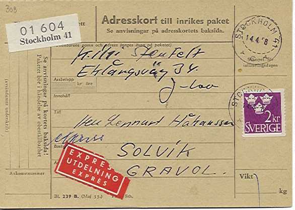 Postage rate 140 öre and express fee 60 öre